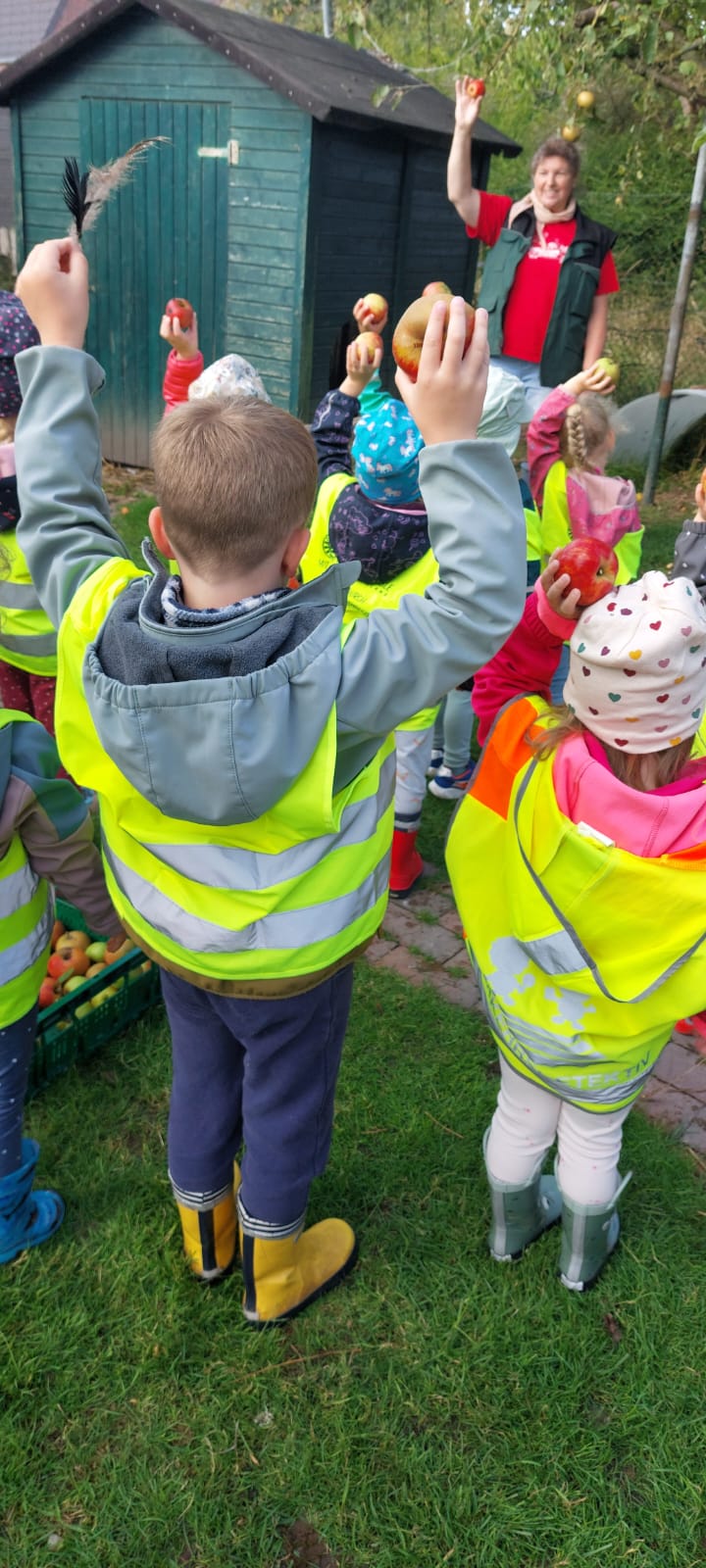 Das gemeinsame Apfelpflücken im Haustierpark bot den Kindern die Möglichkeit, Naturerfahrungen zu sammeln und aktiv mitzuwirken. Die gesammelten Äpfel werden jetzt weiterverarbeitet, beispielsweise zu Apfelmus, Saft oder Kuchen.