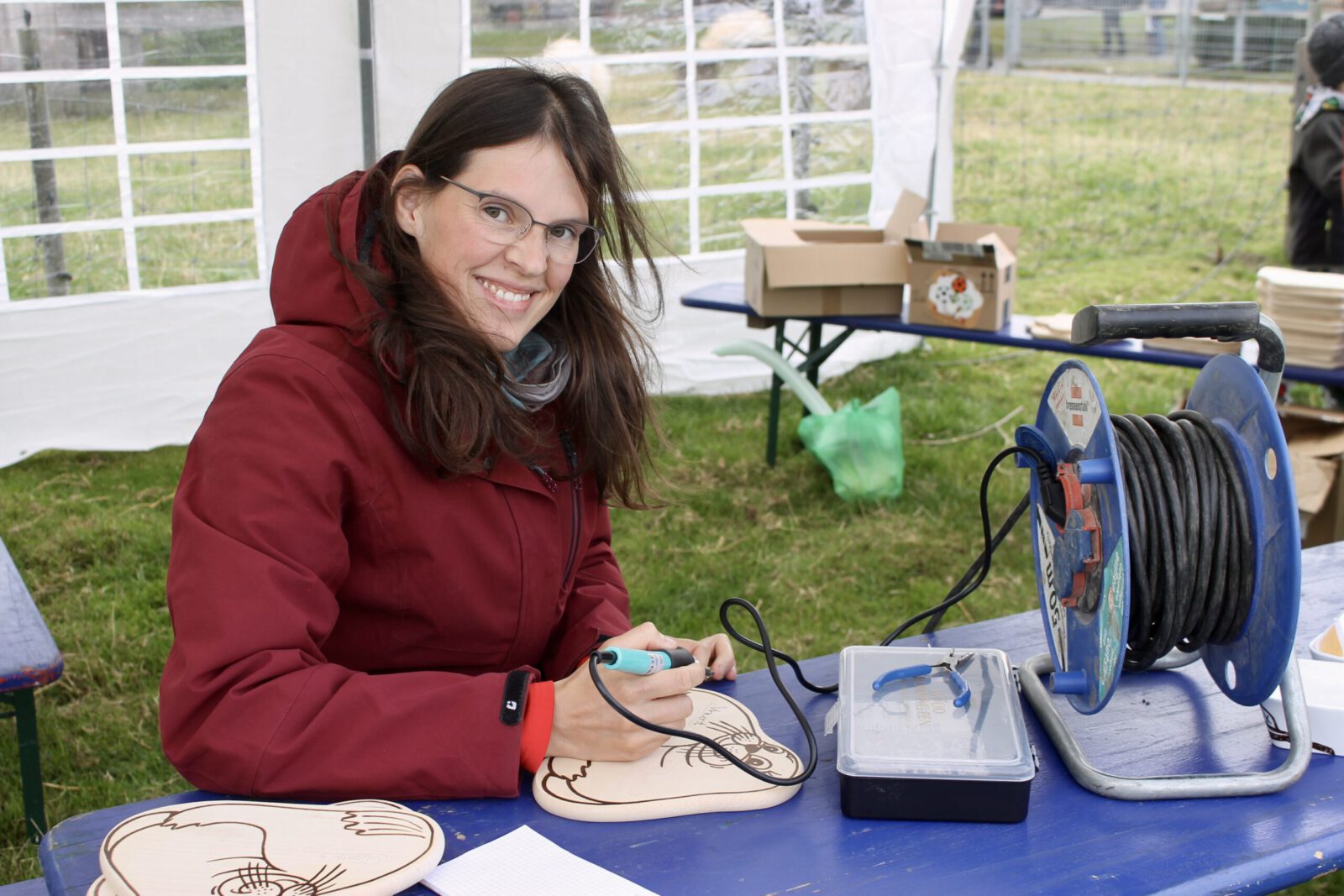 Wer mochte, konnte sich außerdem live ein Holzbrettchen personalisieren lassen.