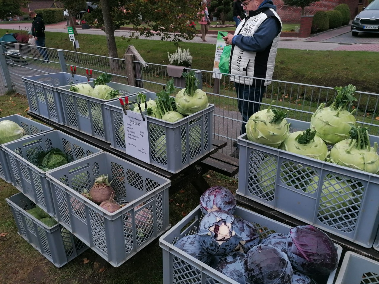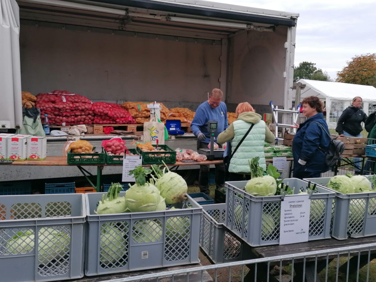 Neben Wollsocken und selbstgemachter Deko war ein Highlight der Obst- und Gemüsestand. Hier wurden Obst, Gemüse und Eier von hiesigen Anbietern angeboten.