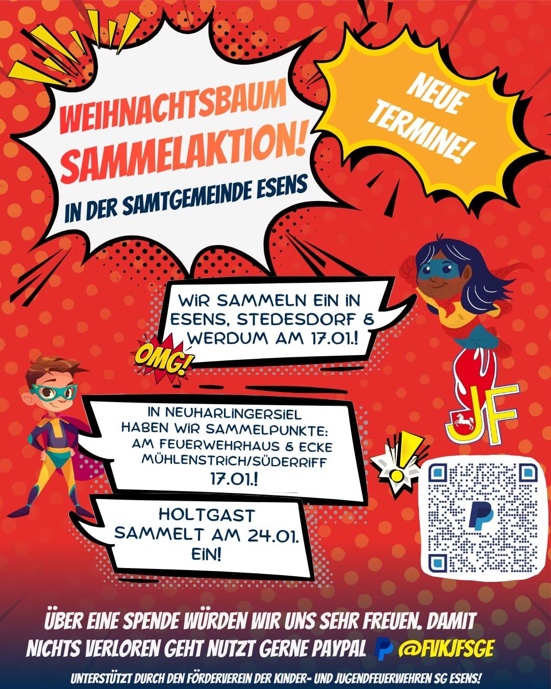 Nachdem die Weihnachtsbaumsammelaktion der Feuerwehr aufgrund der schlechten Wetterbedingungen verschoben werden musste, konnten nun neue Termine festgelegt werden. Die Aktion findet in Werdum am 17. Januar statt.