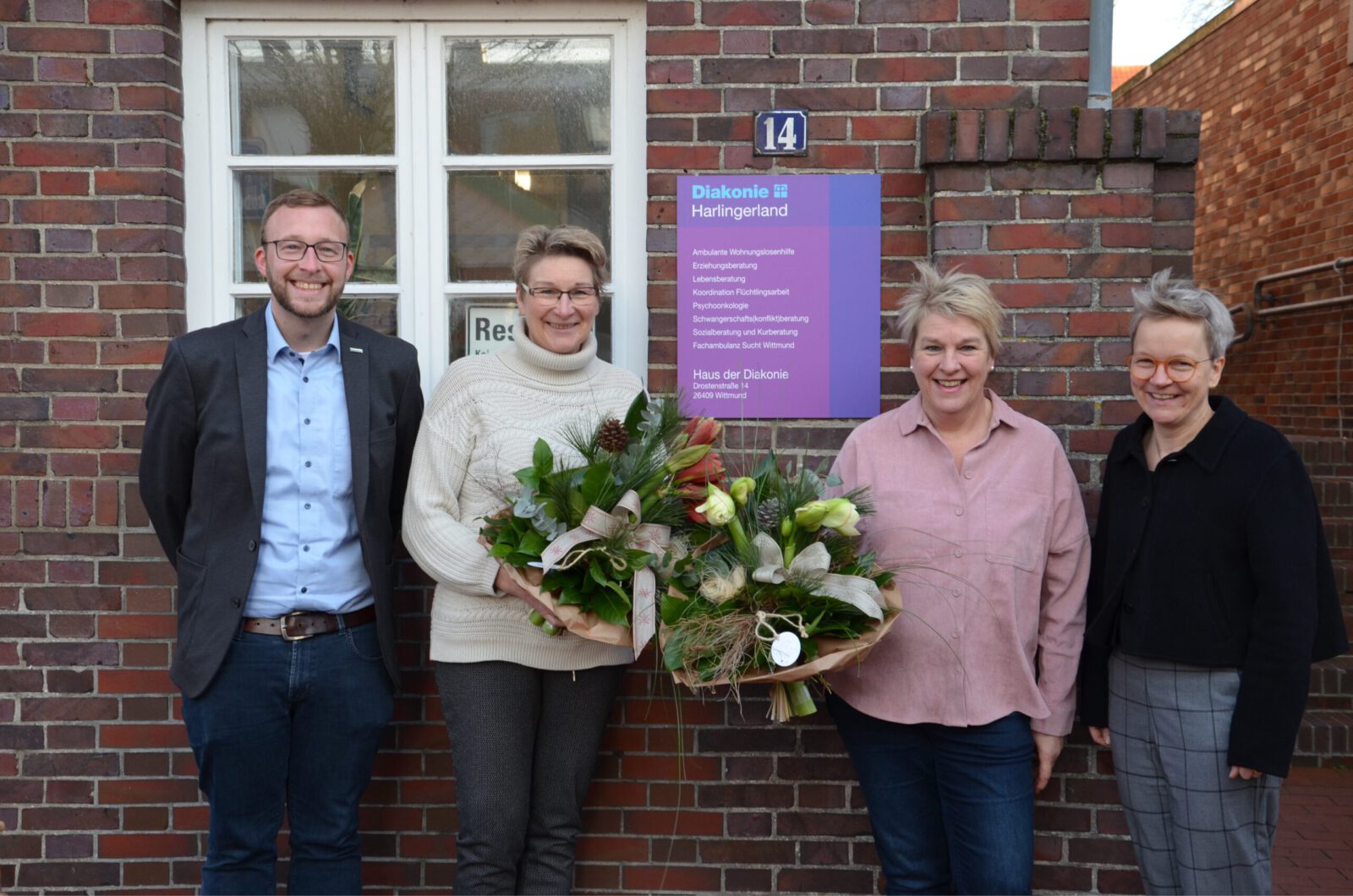v.l.: Geschäftsführer der Diakonie Lars Remmers, Organisatorinnen Christa Behrens und Hilke Rodenbäck sowie Superintendentin Eva Hadem