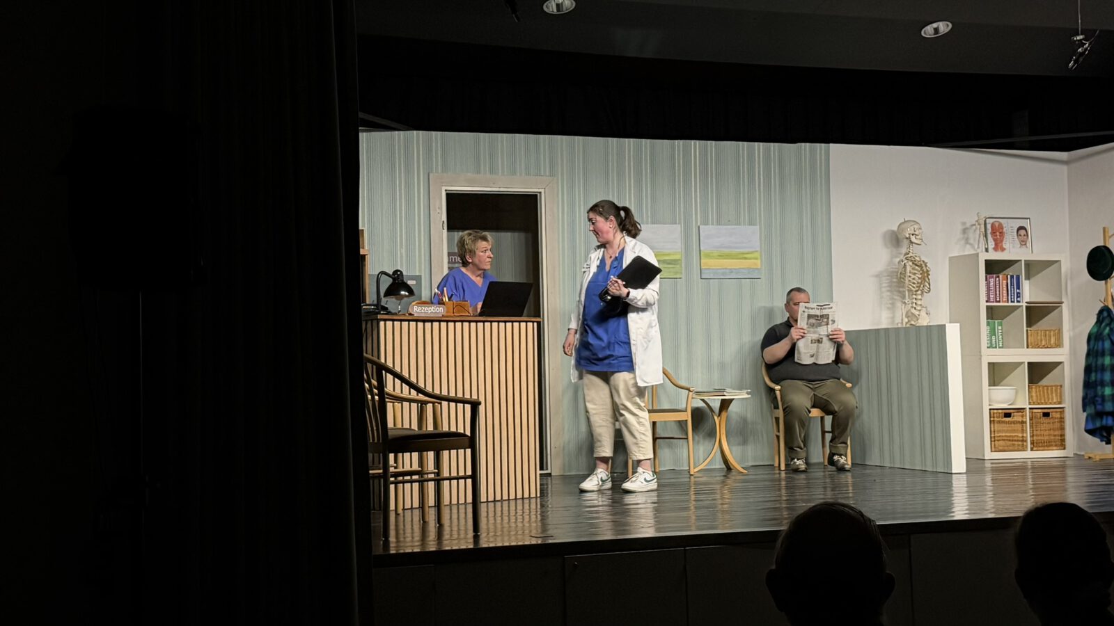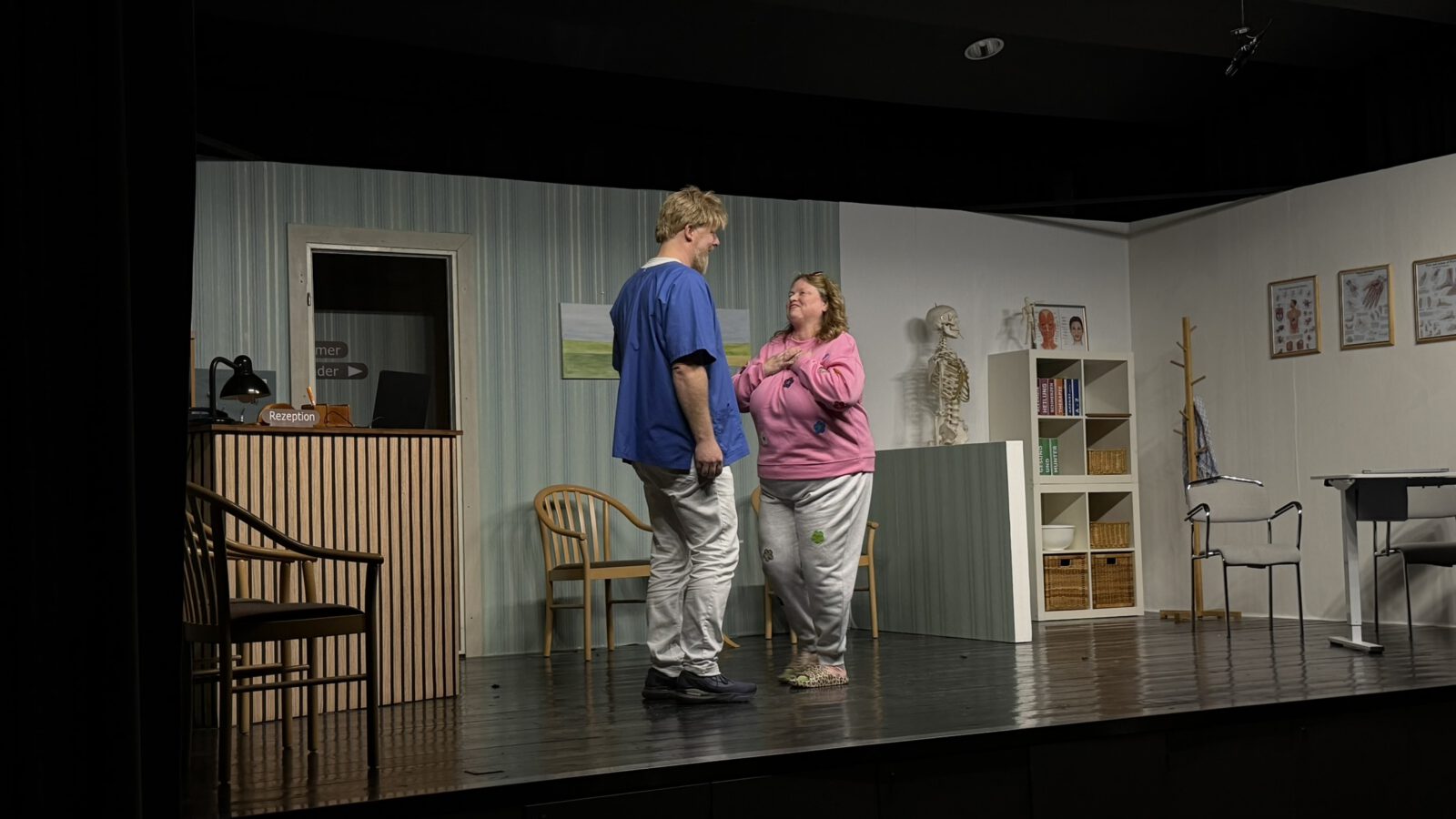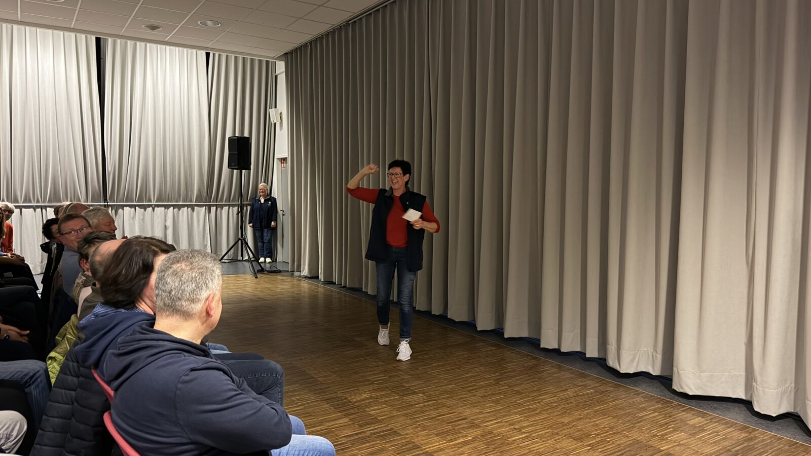 Zu Beginn begrüßte Angelika Pieper das Publikum herzlich im Saal. Als sie die Zuschauer fragte, ob denn alle Lust auf Theater hätten, kam die Antwort laut und eindeutig aus dem Publikum: ein kräftiges „Jawoll!“. Kurz darauf hob sich der Vorhang, und der Premierenabend nahm seinen Lauf.