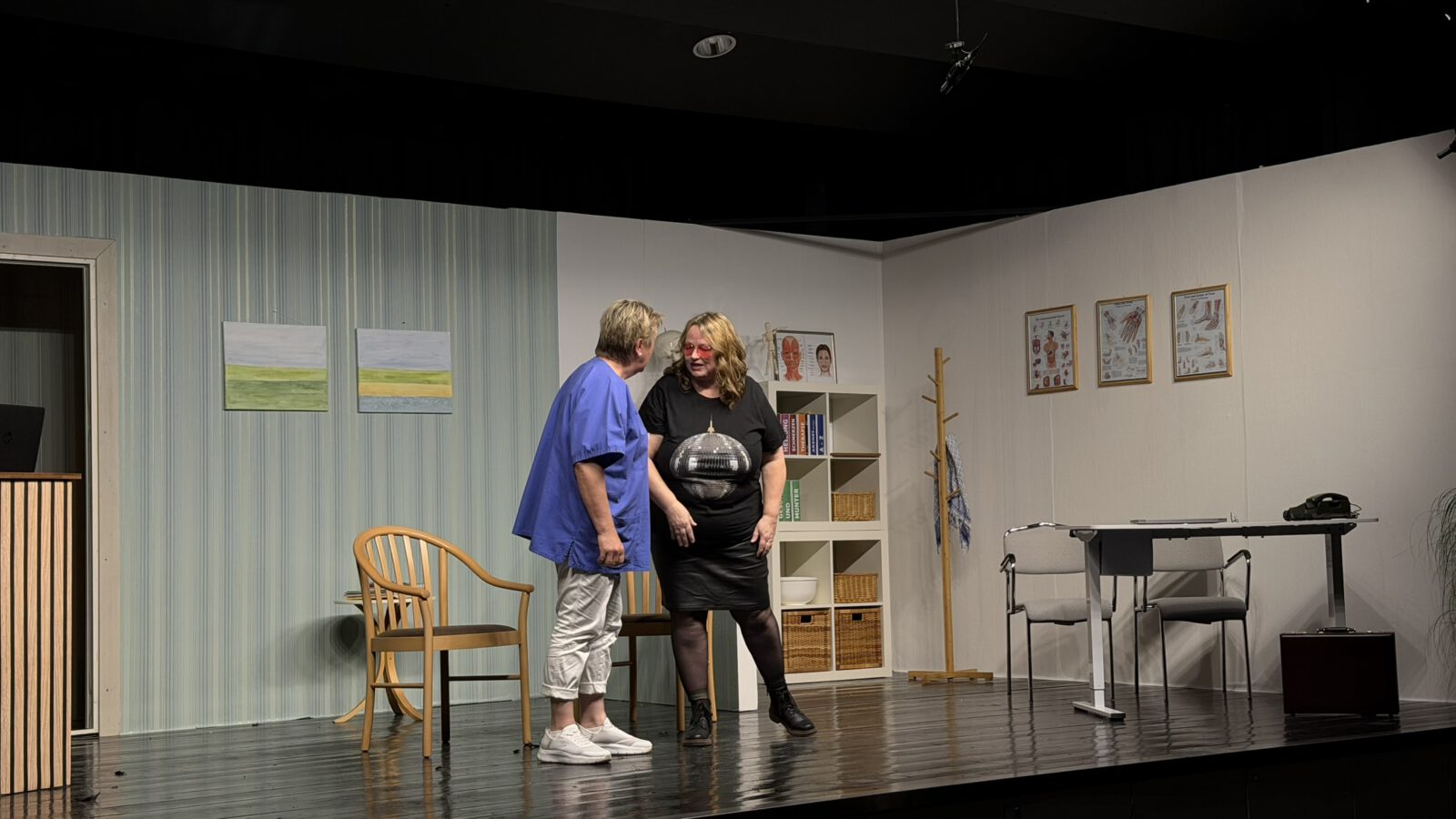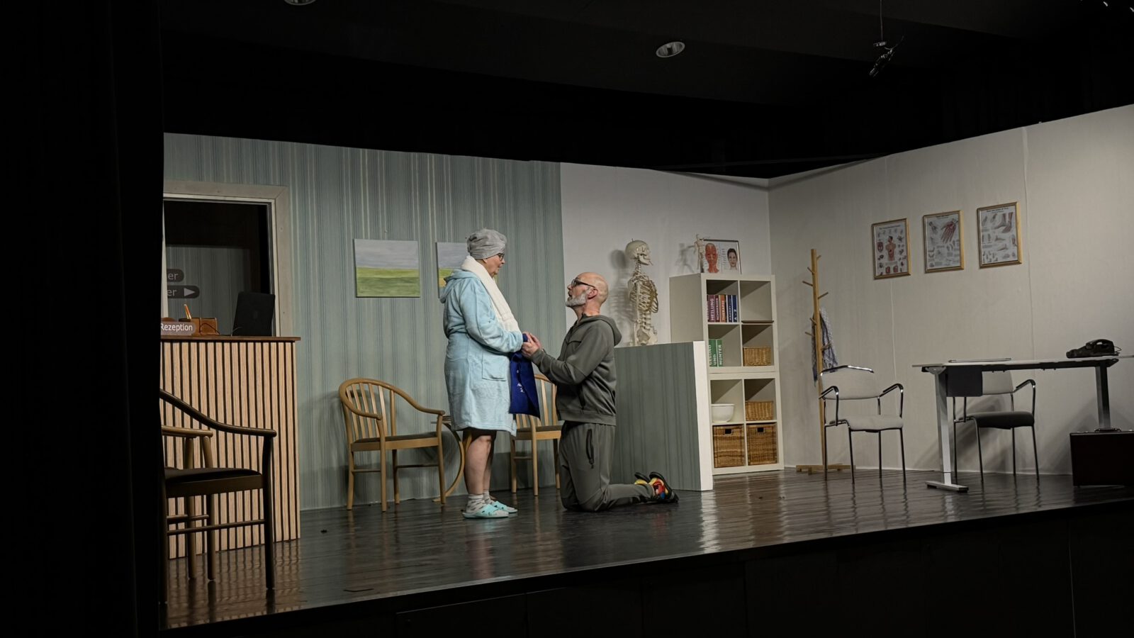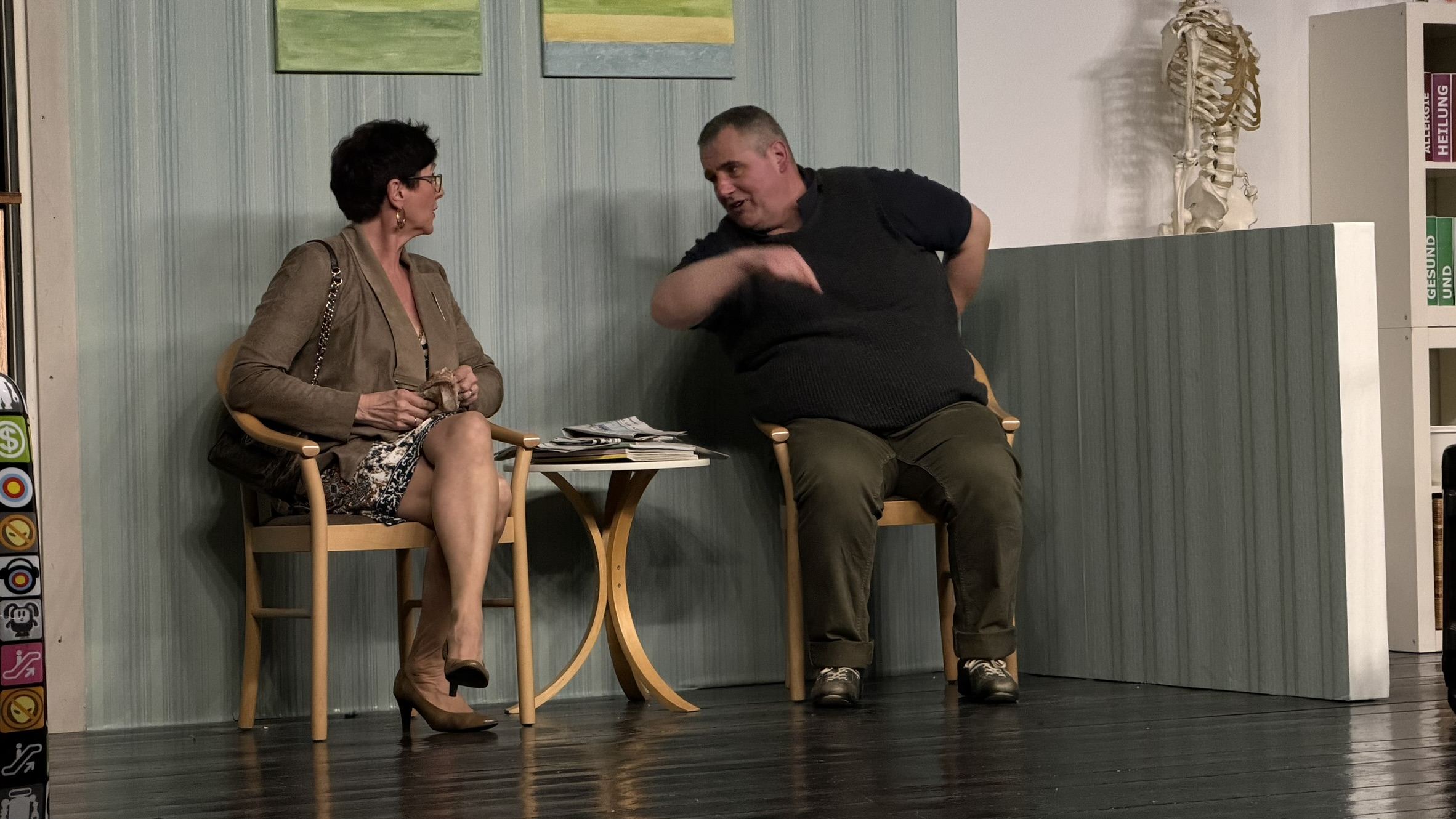 Zu Beginn begrüßte Angelika Pieper das Publikum herzlich im Saal. Als sie die Zuschauer fragte, ob denn alle Lust auf Theater hätten, kam die Antwort laut und eindeutig aus dem Publikum: ein kräftiges „Jawoll!“. Kurz darauf hob sich der Vorhang, und der Premierenabend nahm seinen Lauf.